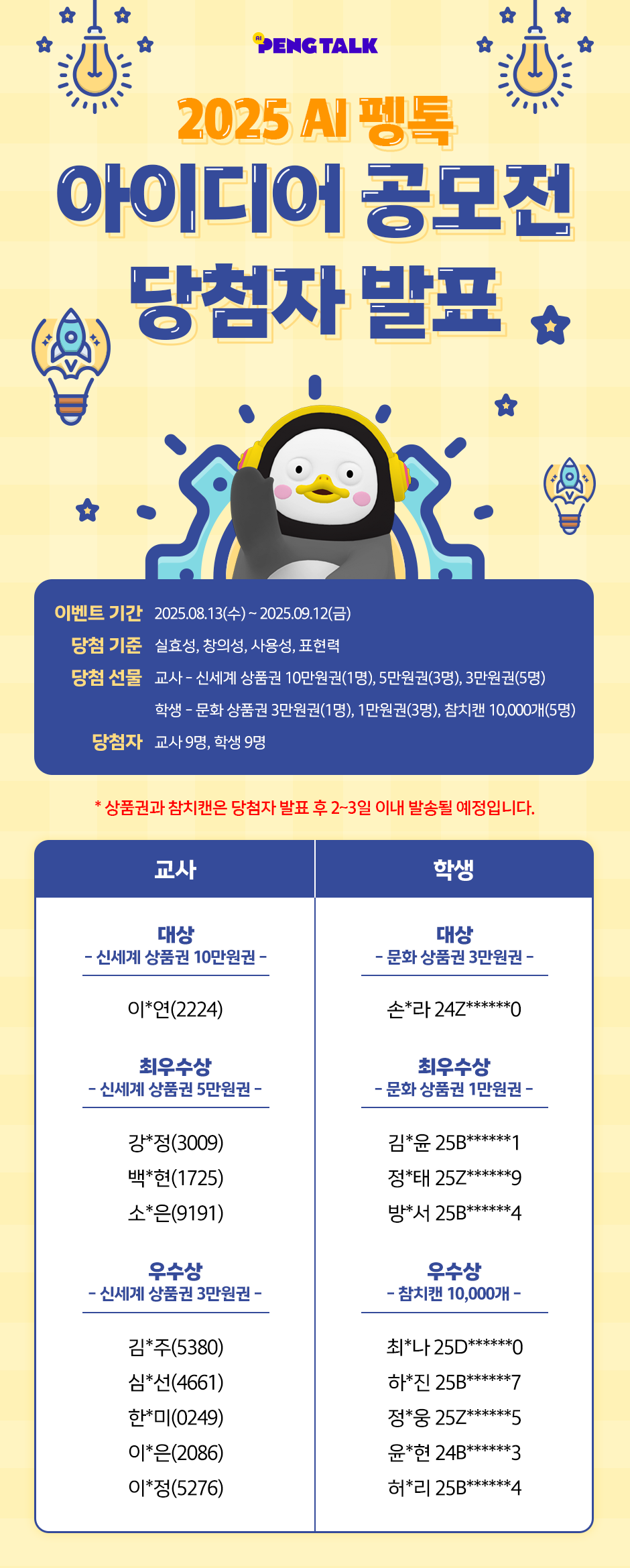 AI 펭톡 아이디어 공모전 당첨자 발표