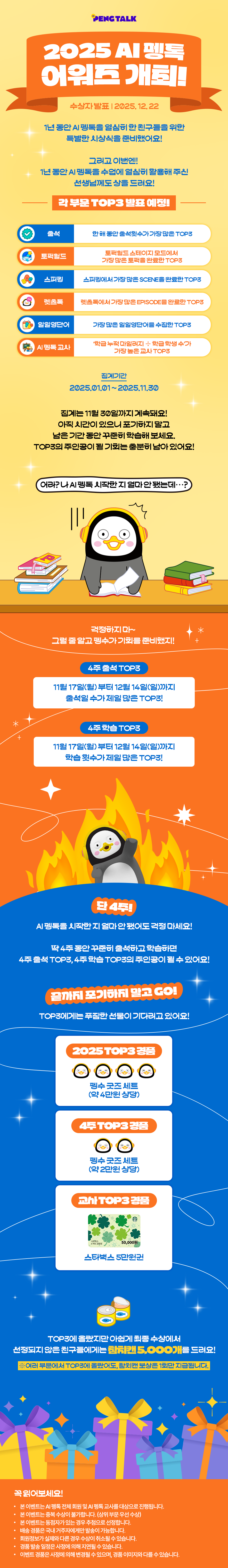 (종료) 2025 AI 펭톡 어워즈 개최! - 4주 출석/학습 TOP3에 도전할 기회!